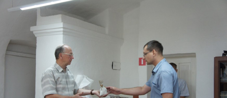 In his turn, I.A. Smirnov gave some books telling about the history of the museum and Kirillov to the Mikhaylov Historical Museum and the town administration of Mikhaylov. Besides, at the request of the guests, the deputy director of the Kirillo-Belozersky Museum-Reserve gave them a handful of earth taken near the burial place of the Vorotynskys.