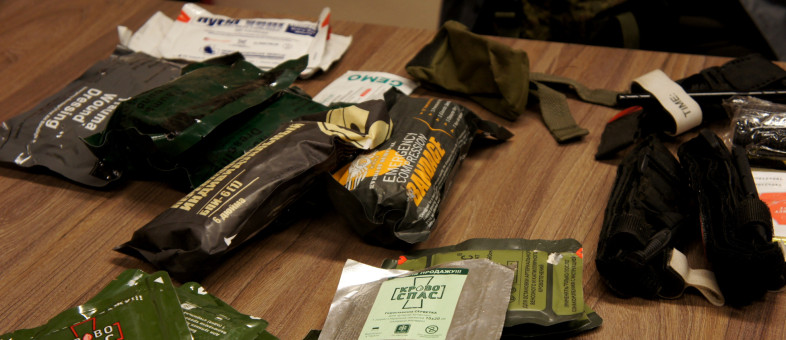«Вот на этих шевронах есть эмблема 347 полка – а их всего 200 штук. Это наш, вологодский полк, в котором я начинал службу, и, возможно, вернусь в него снова, – рассказывал мобилизованный кирилловчанин. – А в этой аптечке я передаю перевязочные пакеты, гемостатические средства, спасательное одеяло, косынку, надглазники, турникет… Что такое надглазник? Ну, как вам объяснить… При ранении в глаз ничего нельзя закладывать, там могут быть осколки, которые можно вдавить в мозг, поэтому, чтобы такого не произошло накладывается подобный щиток, и только после этого приступаем к перевязке.