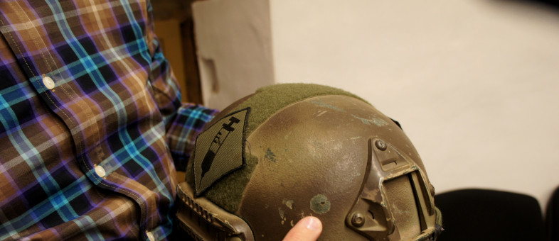 «В этой каске я хожу с 2023 года, сам покупал, – рассказывал музейщикам Алексей. – Шлем был со мной и в Кременной, и на той позиции, где находимся сейчас. В одну из вылазок за ранеными он спас меня от попадания осколка. Видите – на боку скол».