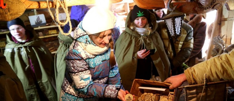 Приехав сюда, участники вместе с мастером Сергеем Токаревым в игровой, интерактивной форме окунулись в лодочную тему через былины и сказания. Они познакомились с историей судостроения, творчеством мастера, увидели жителей подводного царства и других сказочных героев, приняли участие в различных играх, покатались на коне, вырезанном из дерева, поиграли в керлинг, посоревновались в «Тараканьих бегах», испытали лодки-волокуши, прокатившись с горки, и побывали на большом строящемся корабле!