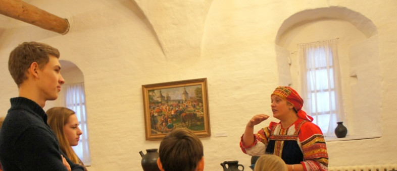 Перед началом мероприятия Ксения Валерьевна предложила участникам облачиться в народные костюмы, тем самым прикоснуться к истокам древней русской культуры, так как традиционный костюм - это частичка самого народа.