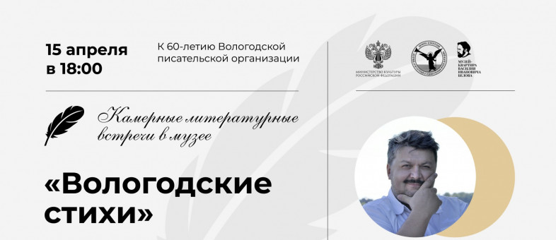 Встреча «Вологодские стихи» состоится в Музее-квартире В.И. Белова 15 апреля в 18.00 часов. Адрес: Вологда, ул. Октябрьская, д.10, кв. 4. Вход свободный, по предварительной записи: +7 (921) 126-14-23, +7 (921) 142-08-56.