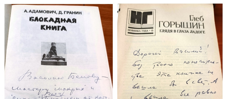 Юлия Веретнова подчеркнула, благодаря находкам пополнится и коллекция автографов в библиотеке писателя. Например, от друзей-однокурсников Белова по Литературному институту – алтайского поэта и переводчика Паслея Самыка («Светлому другу с Литинститутских лет Василий Белову с всегдашней любовью и дружбой»), поэта и публициста Ивана Лысцова, а также почётного профессора Университета Васэда (Токио) Рёхея Ясуи, поэта Глеба Горышина, писателя Алеся Адамовича («Василию Белову – мастеру ″мокрых″ и ″сухих″ дел и проблем, от которых у начальства испарины выступает»), композитора и гармониста Геннадия Заволокина («Василию Ивановичу Белову – гармонисту, писателю, радетелю Земли Русской от автора и гармониста с неизменной любовью»).