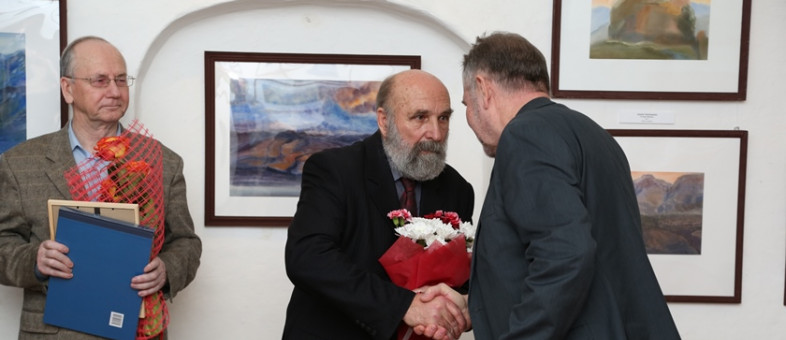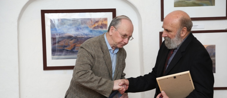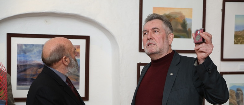 Цветы, благодарности, памятные подарки вручили автору произведений живописи в день открытия выставки в музее-заповеднике. Правда, главный сюрприз ждал Валерия Павловича впереди – председатель правления Вологодского регионального отделения Всероссийской творческой общественной организации «Союз художников России» Николай Иванович Мишуста в присутствии администрации Кирилло-Белозерского музея-заповедника, членов Союза, музейщиков и общественности города вручил В.П. Антонову серебряную медаль Союза художников России «Духовность. Традиции. Мастерство». Это одна из престижных медалей российского художественного профессионального сообщества. Валерию Павловичу она досталась за великие труды. Как сказал Н.И. Мишуста: «Он плоть от плоти художник нашей организации!»