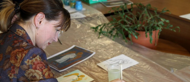 В ходе мероприятия искусствовед и методист музея О.В. Силина проводила мастер-класс «В подмастерье к Дионисию». Данное занятие дает возможность участникам создать небольшую фреску, соблюдая принципы, технологические этапы и художественные приемы мастера рубежа XV–XVI вв. Естественно, что нет возможности полностью воссоздать процесс написания фрески, приходится соблюдать некоторую условность в выборе способа написания и материалов. Однако в результате мероприятия посетитель на практике узнает, как работал Дионисий и создает сувенир на память об этом. В этот раз гости музея под руководством О.В. Силиной создавали образ ангела из жертвенника собора Рождества Богородицы. В ходе занятия О.В. Силина рассказала о символике атрибутов ангела и художественных особенностях данного образа. В связи с приездом желающих поучаствовать, занятие проводили дважды для двух групп посетителей.