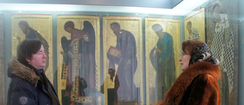 Далее известный пианист отправился в Кирилло-Белозерский историко-архитектурный и художественный музей-заповедник, где совершил прогулку по территории Кирилло-Белозерского ансамбля, большее количество времени Олег Полянский посвятил экскурсии по экспозиции «Древнее искусство XV-XVII веков», расположенной на втором этаже Архимандричьих келий Музея.