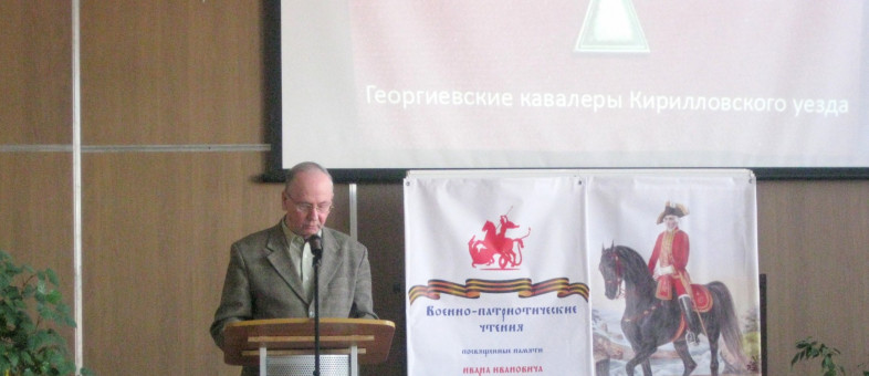 Доклад на тему «Георгиевские кавалеры Кирилловского уезда» представил И.А. Смирнов, заместитель директора Кирилло-Белозерского музея-заповедника. О выдающихся полководцах из рода Воротынских и Кирилло-Белозерском монастыре рассказала заведующий научным отделом Кирилло-Белозерского музея-заповедника Л.В. Теребова. А.Н. Каликина, научный сотрудник Кирилло-Белозерского музея-заповедника, выступила с докладом «Кирилловцы – Герои Советского Союза и Полные кавалеры ордена Славы». Научный сотрудник Музея фресок Дионисия О.В. Силина посвятила свое выступление воинам великомученикам в росписях Дионисия в храме Рождества Богородицы Ферапонтова монастыря.