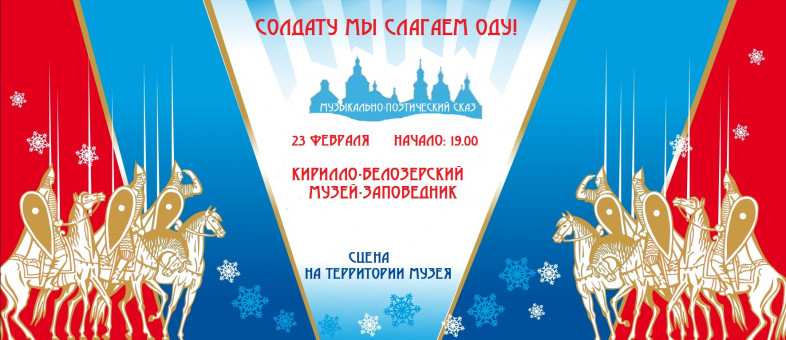 Вечером 23 февраля, в 19:00, в рамках зимних праздников на территории Кирилло-Белозерского музея-заповедника состоится большое культурное событие - Музыкально-поэтический сказ «Солдату мы слагаем Оду!»