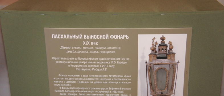 Просветительская программа Кирилло-Белозерского музея-заповедника, включающая презентацию не имеющего аналогов пасхального выносного фонаря XIX века, которую экскурсовод музея Ольга Геннадьевна Кузьмичёва провела в Трапезной палате, в этот день закончилась лекцией «Послание Ивана Грозного в Кирилло-Белозерский монастырь».
