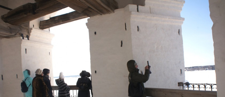 Так, «Кирилло-Белозерский монастырь с высоты птичьего полёта» восхитил своим величием и монументальностью. С площадки Колокольни (1757-1761гг.) экскурсанты наблюдали за ходом развития истории монастыря, о котором так интересно, подмечая тонкости и детали, рассказывала Марина Николаевна Травникова, экскурсовод Кирилло-Белозерского музея-заповедника.