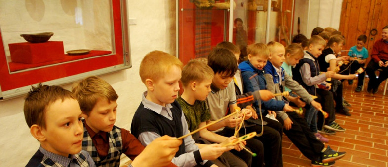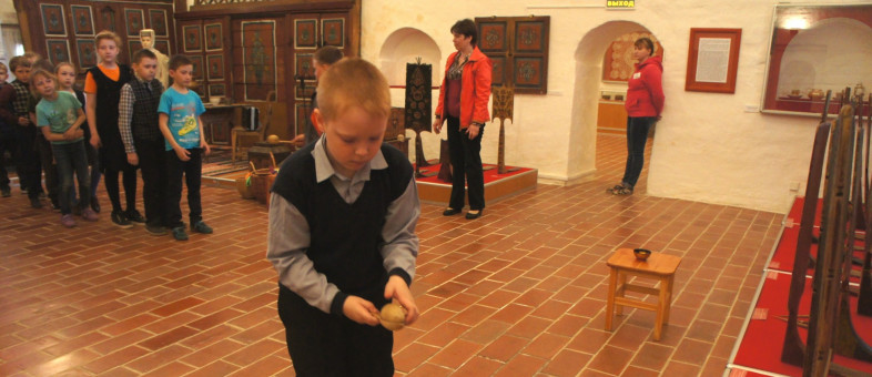 Развлекательная программа ждала школьников в Поварне, в экспозиции «Народное искусство Белозерья». Там они узнали об игрушках, которыми играли дети в XIX веке. Что такое «закидушка», «накидушка» и «фурчалка» после интерактива знал каждый ребёнок. И не только в теории, но и на практике: поиграть ими удалось всем.
