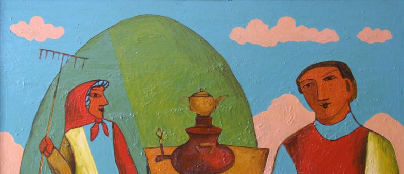 На фото работа «Валентин Распутин» (1980 г.) и «Чаепитие на пожнях» (1990 г.), которая была написана поверх портрета.