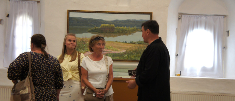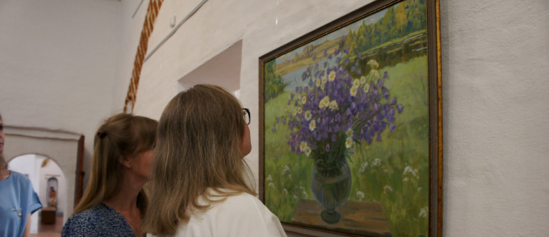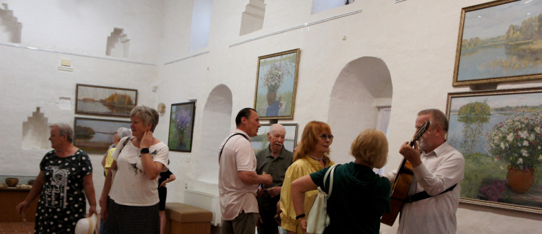 Выставку живописи и графики Заслуженного художника России Евгения Соколова «Светлее грусть, когда цветут цветы» открыли в залах Казенной палаты Кирилло-Белозерского монастыря. В официальном мероприятии принял личное участие сам живописец. В этом году он отметил 88 лет.