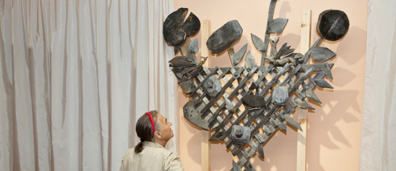 Заместитель директора по развитию и экспозиционно-выставочной работе Кирилло-Белозерского музея-заповедника Людмила Александровна Лупушор отметила, что с каждым годом в «Осенней выставке» появляются новые имена: «Впервые в «Осенней выставке» участвует кирилловский мастер Александр Изяков. Он делает странные и интересные вещи из металла. Если вы пройдёте в третий зал, увидите собаку, собранную из металлических деталей, сослуживших свой век. Тем не менее, чтобы сделать эту деталь, человечеству было необходимо развиться до нашего уровня. И выбросить мастеру эту умную вещь было довольно непросто. Он собрал из неё живое существо! Наполнил жизнью! Вы видели его рок-гитариста? Это же отдельная тема. На него смотришь, и хочется выхватить гитару из рук и тоже начать играть! Работы Александра Изякова весьма экспрессивны, а это всегда интересно.