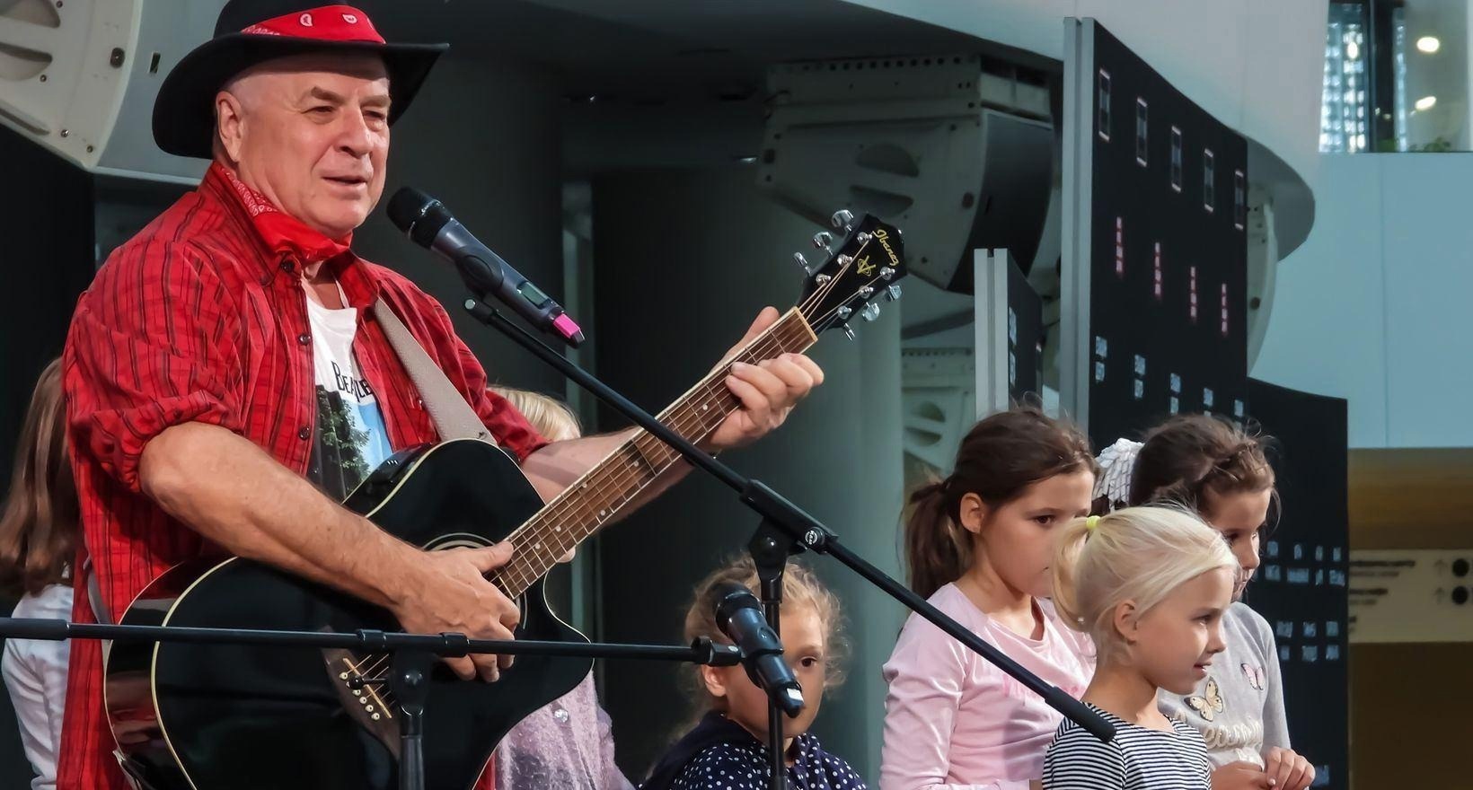 На творческом вечере в Кириллове композитор Григорий Гладков песню из советского мультфильма "Пластилиновая ворона" сыграл в стиле кантри 24 марта 2025